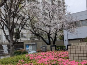 がっかりしながら公園の近くを歩いていると、遠くから見ても綺麗に咲く桜を見つけました。