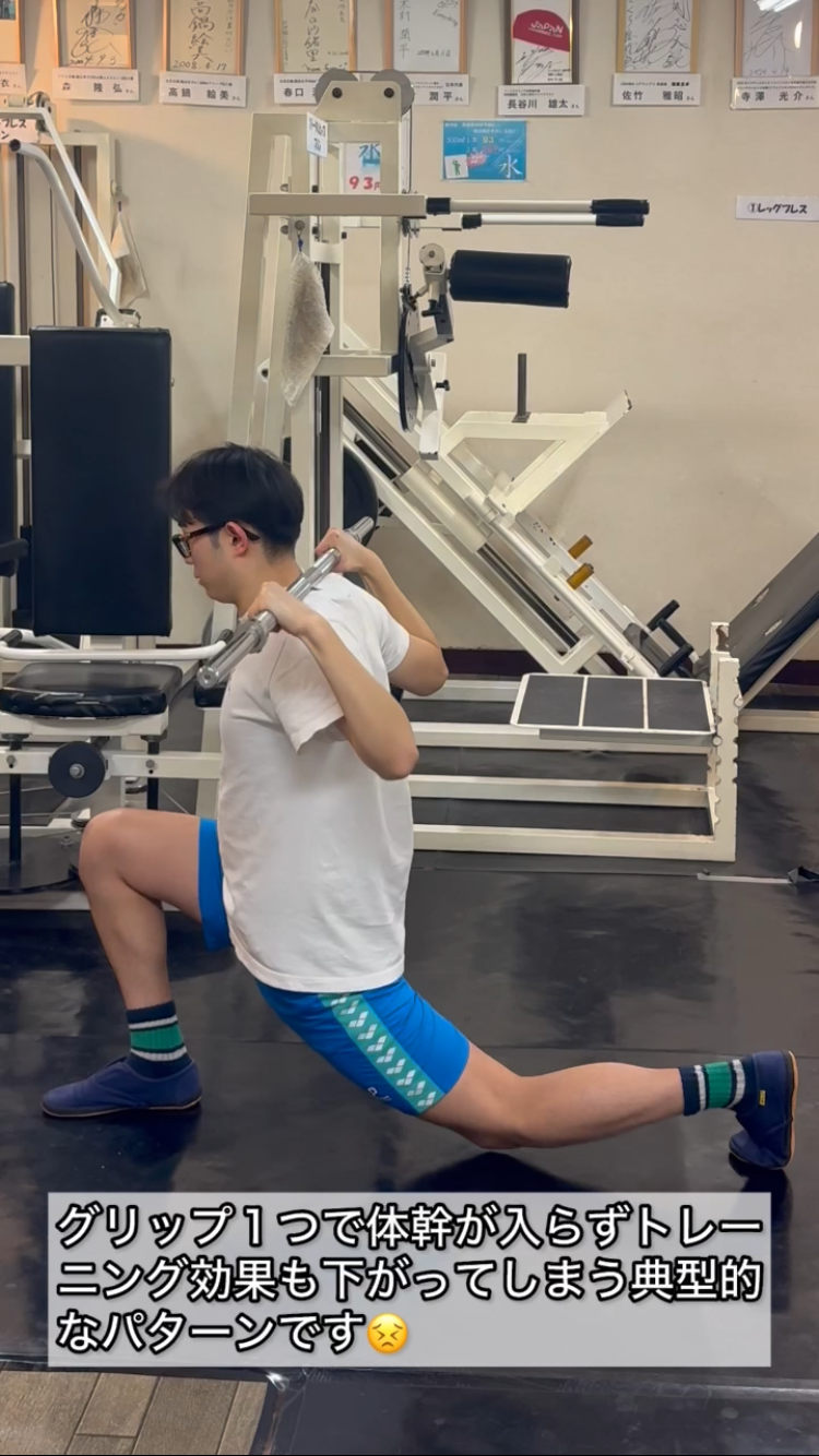 動画後半にあるような前腕が傾いて肘が後ろになり、胸背中が丸くなって下半身のトレーニングをしている人をよく見かけます。