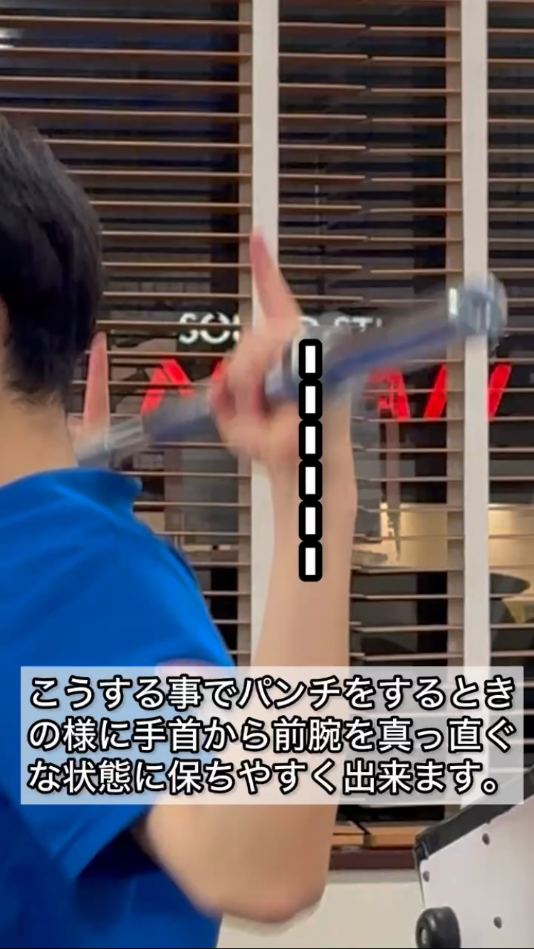 小指&末梢の関節からグリップすると手首で折れることなく前腕の小指側の骨に力が伝わりやすくなります。